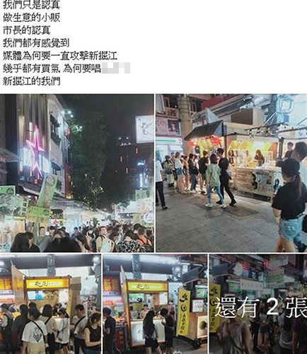 一位新崛江攤商不滿媒體為何要一直攻擊新掘江,貼出新崛江人潮照片。(圖片取自臺媒)