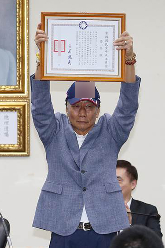 中國臺灣網(wǎng)4月18日訊 據(jù)臺灣“中時電子報”報道,鴻海董事長郭臺銘有意投入國民黨內2020初選,其黨籍認定及黨權問題引發(fā)討論。國民黨昨日(18日)由黨主席吳敦義親授榮譽狀,直接稱郭臺銘為“同志”“黨員”。至于攸關登記初選的“黨權”問題,中常委也在中常會進行聯(lián)署,將提案修正提名辦法,加注“對本黨有重大、特殊貢獻者,不受入黨或恢復黨籍滿4個月之限制”,此案將在24日中常會中提出。