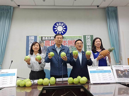 “藍委”陳宜民表示,高雄市長韓國瑜訪大陸,也是希望將番石榴外銷,而高雄市農業局長能掌握大陸習慣吃紅心番石榴,而非臺灣的白心番石榴,反觀“農委會”一籌莫展,對于全臺農產品產銷失衡狀況,成立“臺農發”也毫無作為,浪費納稅人的錢。他指出,4月中陳吉仲有送番石榴到各“立委”辦公室,但這無法解決問題,很多人都將番石榴退回。