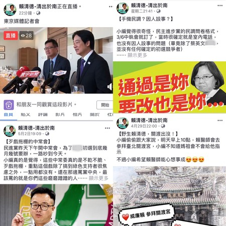 據報道,賴清德上午進行直播時,賴團隊的幕僚郭瓊俐在媒體Line群組丟出一個臉譜網賬號,并告知“賴清德媒體餐敘直播”。點入該賬號,卻是“賴清德-清出于南”的賬號,并非賴清德官方賬號。