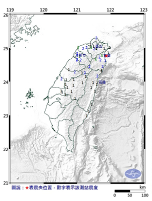 宜蘭縣近海今天(13日)下午4時55分,發生里氏規模4.9級地震。(圖片取自臺媒)