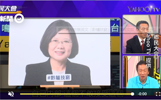 臺灣鴻海集團董事長郭臺銘,參與的臺灣“YAHOO鄉民大會”節目錄影,今日(15日)播出(圖片來源:臺灣“東森新聞云”)