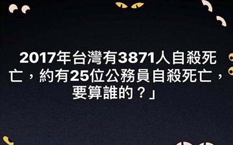 此話一出,遭外界批判小英嚴重失言,非常不厚道。對此,葉毓蘭也在臉書發文表示,2017年臺灣有3871人自殺死亡,約有25位公務員自殺死亡,要算誰的?底下網友也紛紛表示,“他不提這事就算了,一提反而自掘墳墓”“說得好”“她當沒看到”。ㄖ袊_灣網 娟子)