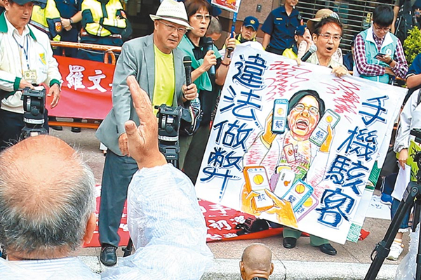 民進黨中執(zhí)會29日討論2020初選辦法,賴清德的支持者至民進黨中央前聲援,高喊蔡英文違法作弊。(圖片來源:臺灣“中時電子報”)