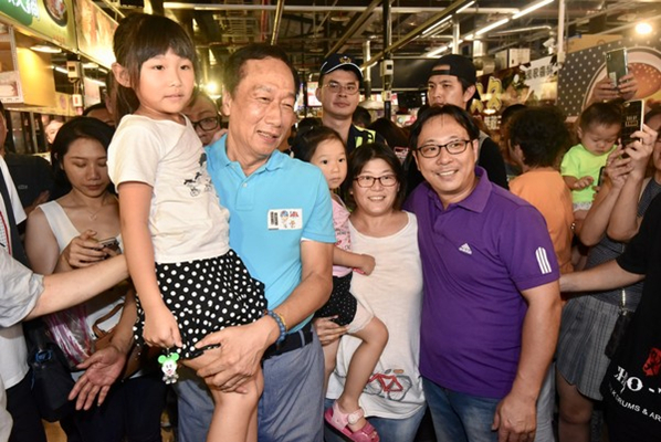 中國臺灣網6月9日訊 據臺灣“東森新聞云”報道,臺灣鴻海集團董事長郭臺銘,為參加國民黨2020初選爭取民眾支持,8日繼續北臺灣夜市行程,拜訪新店區安和國際夜市并發放福袋,受到攤商和當地民眾的熱情接待。民眾扶老攜幼前來合影,郭臺銘來者不拒通通將小孩一把抱起展現親民作風。親切的郭臺銘點了200元(新臺幣)平民小吃,并率領民眾向蔡當局嗆聲高喊“人民不能再忍耐另一個4年了”!