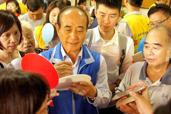 王金平拜廟,信眾擁簇向他要簽名。(圖片來源:臺灣《聯合報》)