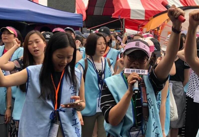罷工的空服人員(圖片來源:臺灣《中時電子報》)