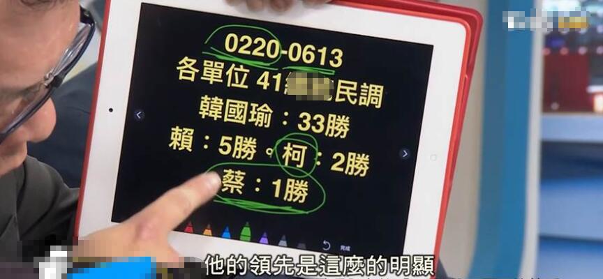 陳揮文說,在2月20之前,各單位做的民調第一名一直是柯文哲,但韓國瑜被列入之后,幾乎每次都是第一名,一共拿下33勝;而賴清德與柯文哲分別是5勝與2勝;蔡英文則是只有1勝,而這唯一的勝利還是在13日民進黨公布初選民調那天擊敗賴清德所拿下的,簡直讓人不忍直視。(中國臺灣網 楊旋)