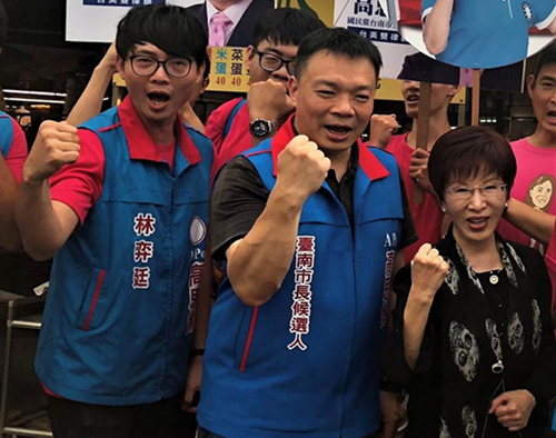 國民黨前主席洪秀柱(右一)表達愿意南征臺南艱困選區,去年代表國民黨參選臺南市長的高思博(中)表達全力支持。(圖片來源:臺灣“中時電子報”)