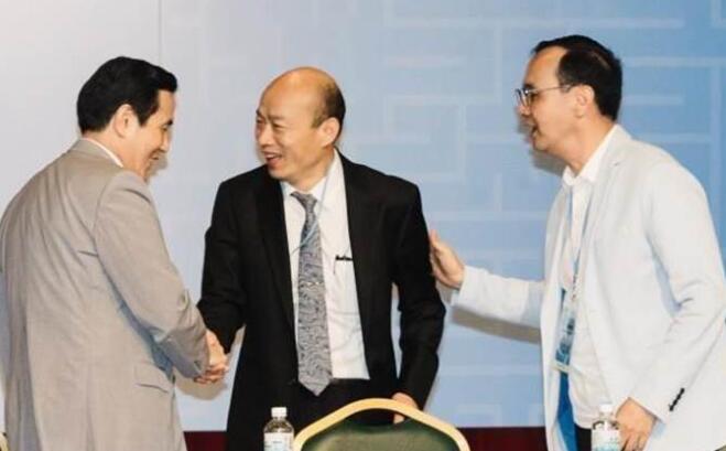 馬英九、韓國瑜和朱立倫握手寒暄。(圖片來源:臺灣《中時電子報》)
