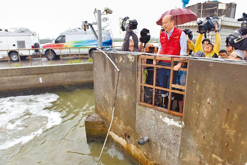 高雄市長(zhǎng)韓國(guó)瑜24日視察拆橋工程。(圖片取自臺(tái)媒)