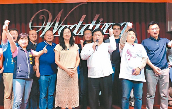 挺韓的鎮(zhèn)瀾宮董事長(zhǎng)顏清標(biāo)(右三)向郭臺(tái)銘、王金平喊話。(圖片來(lái)源:臺(tái)灣《聯(lián)合報(bào)》)