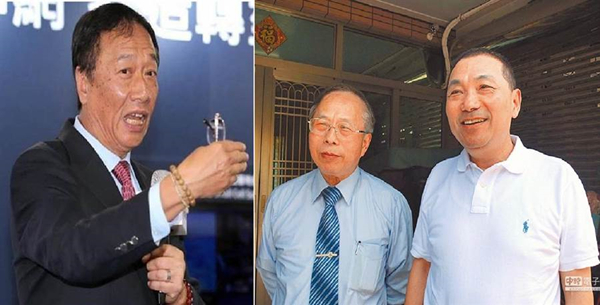 鴻海集團創(chuàng)辦人郭臺銘(左)、侯友宜二哥侯明鋒(中)、新北市長侯友宜(右)。
