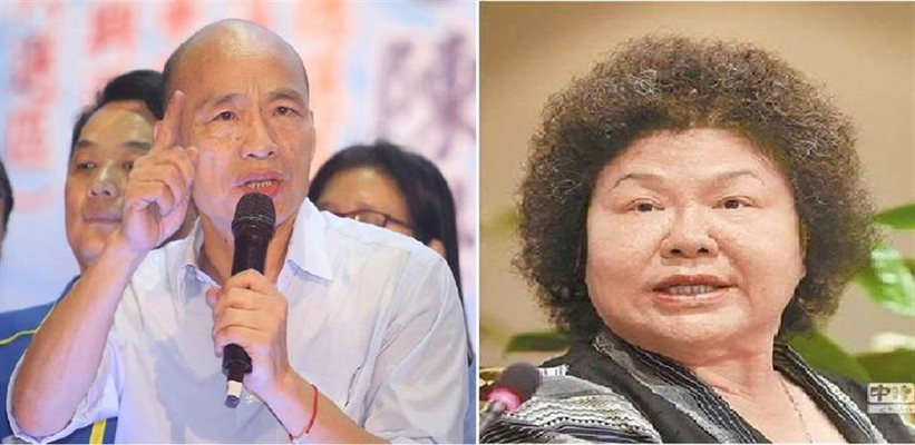 高雄市長韓國瑜(左)高雄前市長、蔡英文辦公室秘書長陳菊(右)(圖片來源:臺灣“中時電子報”)