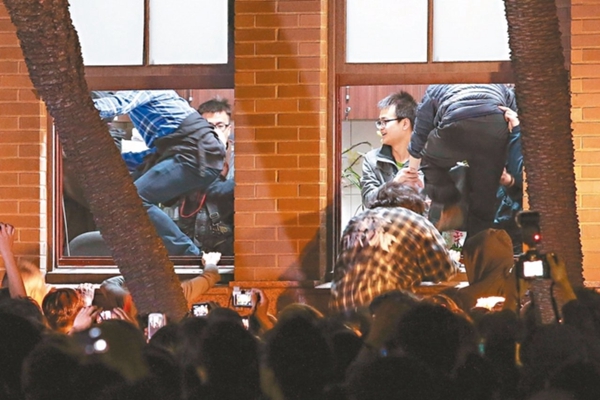 2014年“太陽花學運”民眾闖入臺灣“行政院”。(圖片取自:臺灣“聯合新聞網”)