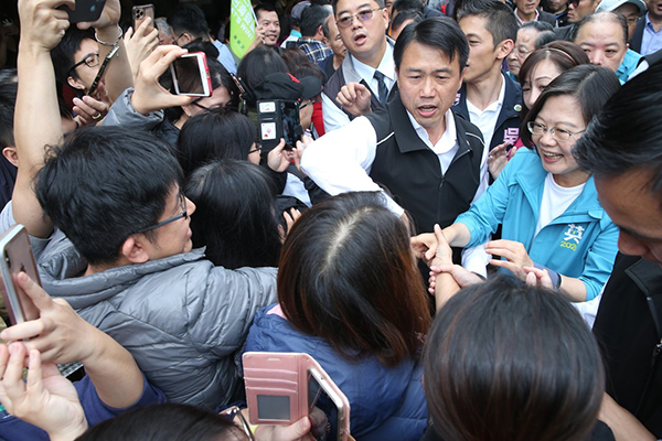蔡英文30日上午到臺北南京市場輔選掃街,現場擠成一團非常混亂。(圖片來源:臺灣《聯合報》)