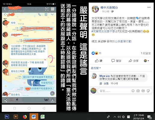 網絡流傳韓國瑜造勢有志愿者時數,國民黨澄清絕無此事,痛批抹黑。▓D片來源:臺灣“中時電子報”)