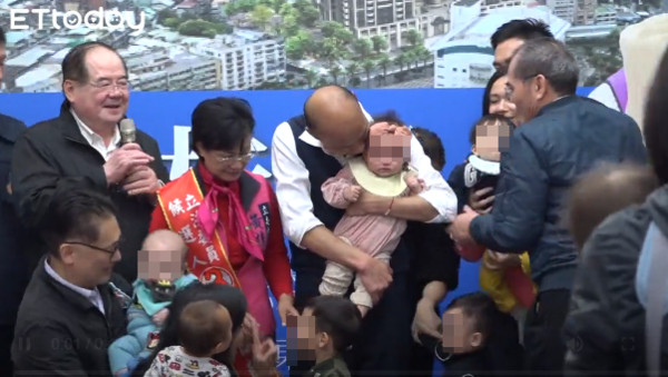 韓國瑜親吻女嬰。(圖片來源:臺灣“東森新聞云”)