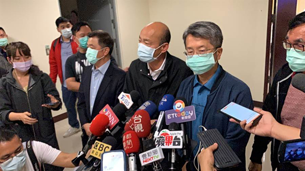 韓國瑜宣布高雄防疫升級(jí)應(yīng)對(duì)肺炎疫情。(圖片來源:臺(tái)灣“中時(shí)電子報(bào)”)