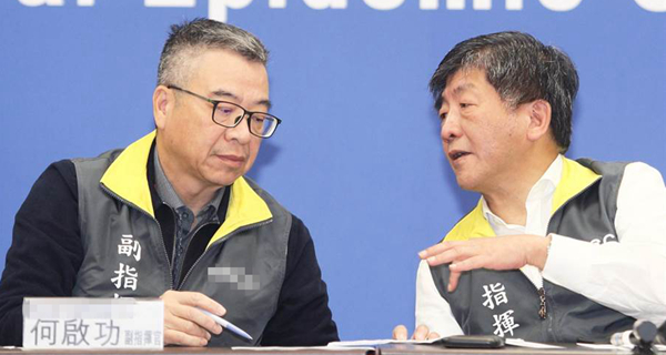 臺(tái)當(dāng)局“衛(wèi)福部政務(wù)次長(zhǎng)”何啟功(左)與“衛(wèi)福部長(zhǎng)”、“疫情中心”指揮官陳時(shí)中(右)。(圖片來(lái)源:臺(tái)灣“中時(shí)電子報(bào)”)