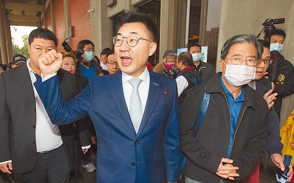 國民黨主席江啟臣(中)。(圖片來源:臺灣“中時電子報”)