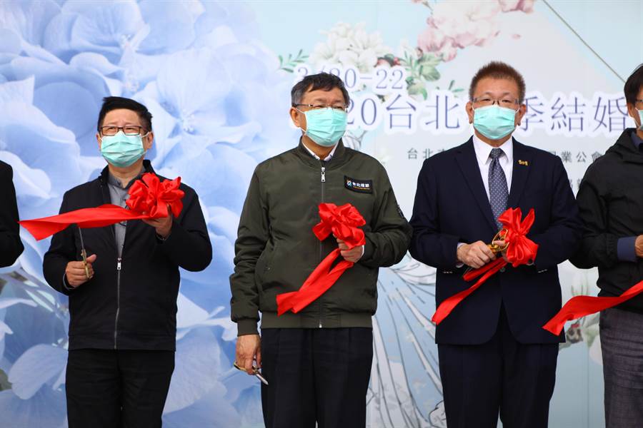 臺(tái)北市長柯文哲(左二)20日參加結(jié)婚購物節(jié)。(圖片來源:臺(tái)灣“中時(shí)電子報(bào)”)