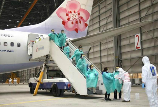圖為第二批滯留湖北的361名臺(tái)胞返臺(tái)場景。(圖片來源:臺(tái)灣“中時(shí)電子報(bào)”)