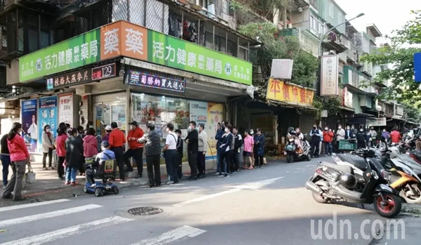 各地藥局涌現排隊人潮,不少人都深怕晚一步買不到。(圖片來源:臺灣《聯合報》)