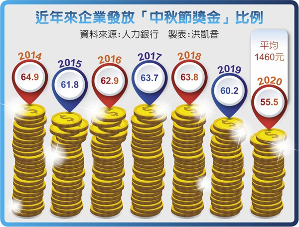 調查:島內55%企業會發放中秋節獎金 創近7年新低