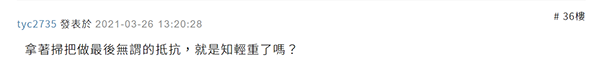針對臺灣藝人的上述正義行動,臺行政機構負責人蘇貞昌出言譏諷道,有些人不知輕重,為了自己利益,不知道人權的重要。不少臺灣網友在新聞下參與討論,駁斥蘇貞昌的荒謬言論。“拿著掃把做最后的抵抗就知道輕重了嗎?”“支持勇敢的藝人”“人家藝人有腦能辨是非,你有嗎?”