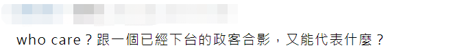 對于綠媒炒作蓬佩奧與蕭美琴見面,有島內(nèi)網(wǎng)友稱,“who care?跟一個(gè)已經(jīng)下臺(tái)的政客合影,又能代表什么?”就是“作秀”。也有網(wǎng)友諷刺蕭美琴,“給了多少錢才有這張照片?”“又要白花臺(tái)灣多少錢?還要敗家多久?可惡!”