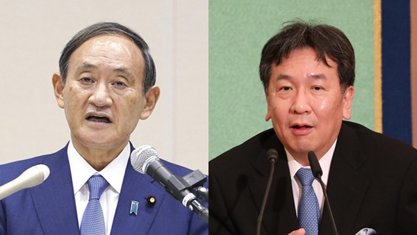 日本首相菅義偉與立憲民主黨代表枝野幸男。(圖片取自臺媒)