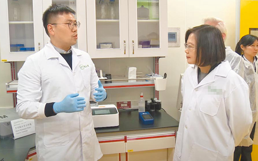圖為蔡英文此前前往新竹視導高端疫苗公司。(圖片取自臺媒)