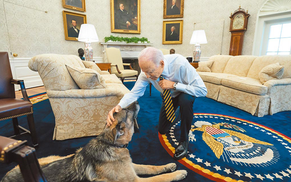 拜登與其寵物犬“冠軍”。