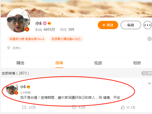“我不是‘臺獨’!”風波后小S首發微博澄清