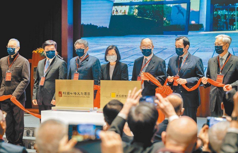 綜合臺媒報道,22日,臺北市政府和蔣經國國際學術交流基金會興建的“經國七海文化園區”開幕,蔡英文、前臺灣地區領導人馬英九、前臺灣地區副領導人連戰、臺北市長柯文哲、前臺北市長郝龍斌、朱立倫、親民黨主席宋楚瑜、蔣經國嫡長孫蔣友松、中國國民黨民代蔣萬安等人也都現身會場,蔡英文也罕見與眾多藍營政治人物同框。
