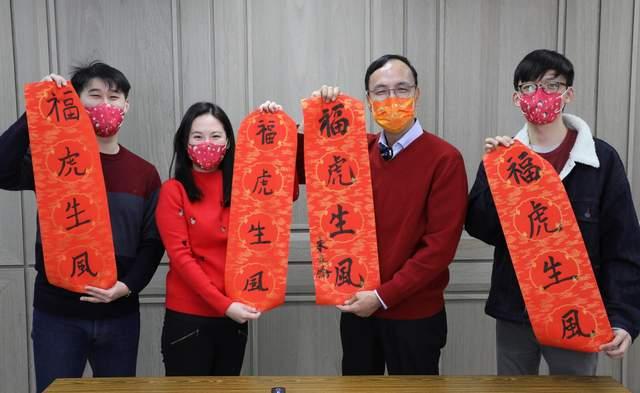 中國臺(tái)灣網(wǎng)2月1日訊 據(jù)臺(tái)灣“中時(shí)新聞網(wǎng)”報(bào)道,為迎接農(nóng)歷虎年到來,中國國民黨主席朱立倫與三位青年朋友一同揮毫開筆,寫下“福虎生風(fēng)”春聯(lián),向大家拜年。除祝福新的一年,各行各業(yè)欣欣向榮、臺(tái)灣鄉(xiāng)親虎年如意,他也期望全體臺(tái)灣民眾同心協(xié)力,盡快脫離病毒肆虐,拋開疫情陰霾,成為飛奔躍升的一年。