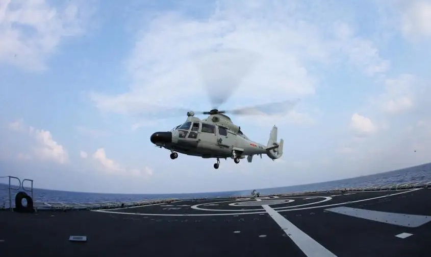 解放軍艦載直升機“超低空”巡航臺島東“監視”臺軍演訓。(圖片源自網絡)