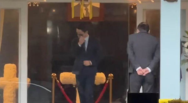 蔣萬安離開前“難過拭淚”。(圖片來源:臺灣“中時新聞網”)