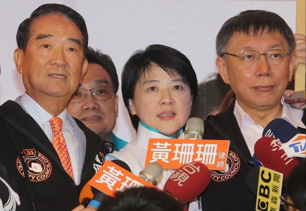 親民黨主席宋楚瑜(左)、臺北市前市長柯文哲(右)、臺北市前副市長黃珊珊(中)。 (圖片來源:臺灣《聯合報》)