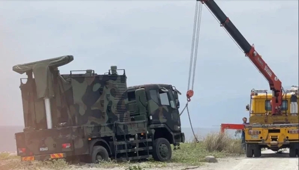 中國臺灣網4月18日訊 據臺灣《聯合報》報道,臺軍方大型氣象觀測車今天(18日)在臺東知本海灘進行場地勘察時,疑不熟悉地形,車輛后輪陷入沙堆動彈不得,最后找來民間拖吊車吊拉,才順利脫困。