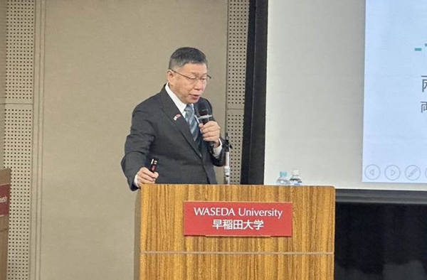 柯文哲在日本早稻田大學(xué)發(fā)表演講。(圖片來(lái)源:臺(tái)灣“中時(shí)新聞網(wǎng)”)
