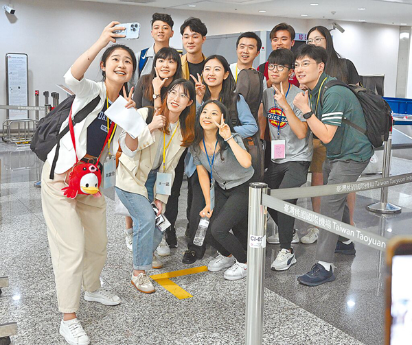 兩岸學生在機場合影留念。(圖片來源:臺灣“中時新聞網”)