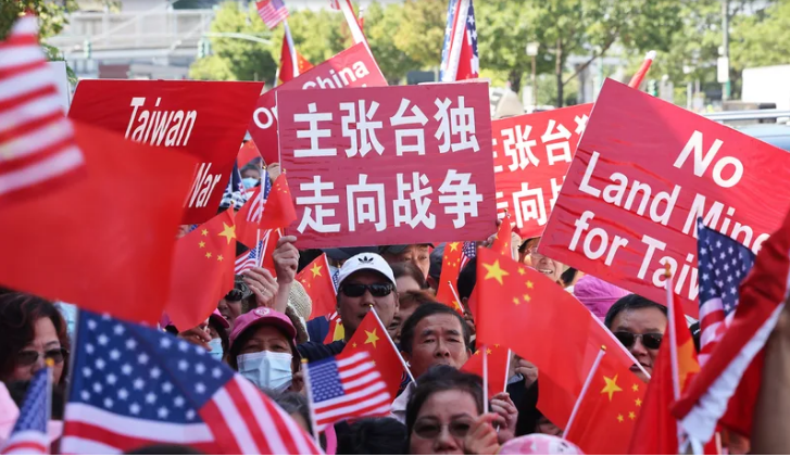 活動開始前,上午就有僑胞團體在場外集合抗議,高舉“反對‘臺獨’”“支持一個中國”“和平統(tǒng)一”及“反對‘臺獨’分子‘竄訪’美國”等標語。被問到為何前來抗議,他們表示,“反對‘臺獨分子’賴清德竄訪美國”,并高喊,“賴清德滾出去”“臺灣是中國不可分割的一部分”。