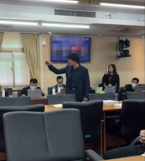 民進黨民代沈伯洋沖入會場。(圖片來源:臺灣“中天新聞”)