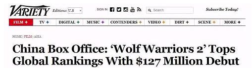 美國綜藝網站《Variety》對《戰狼2》的票房表示驚訝