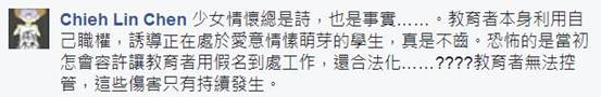 接著控訴了臺灣教育者,稱其善于利用職權誘導處于愛情萌芽期的學生: