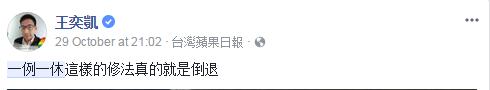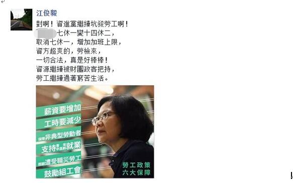 這里再給各位講個(gè)知識(shí)點(diǎn):在島內(nèi)現(xiàn)行的“勞基法”中規(guī)定“勞工每七日中應(yīng)有二日之休息,其中一日為例假,一日為休息日”,但未明說(shuō)例假應(yīng)該怎么排,故而早期時(shí)有“七休一”函釋?zhuān)礊閮衫賾?yīng)間隔6個(gè)工作日,但如征得工會(huì)或勞工同意,例假可挪移,后因可連上12天班的“弊端”遭批;之后蔡英文當(dāng)局上任,另以新“函釋”廢止舊“函釋”,又規(guī)定兩例假間最長(zhǎng)就是6天,硬性規(guī)定了“一例一休”,但沒(méi)想到這次的“修法”卻又松綁了“七休一”……新黨新思維中心主任侯漢廷也在臉譜網(wǎng)怒斥稱(chēng):有關(guān)“一例一休”每一個(gè)修訂,都是越修越糟!
