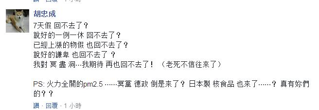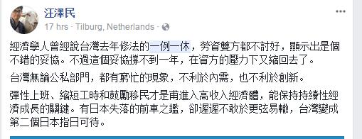 更有網(wǎng)友直言:“一例一休”讓“臺(tái)灣變成第二個(gè)日本指日可待了”。