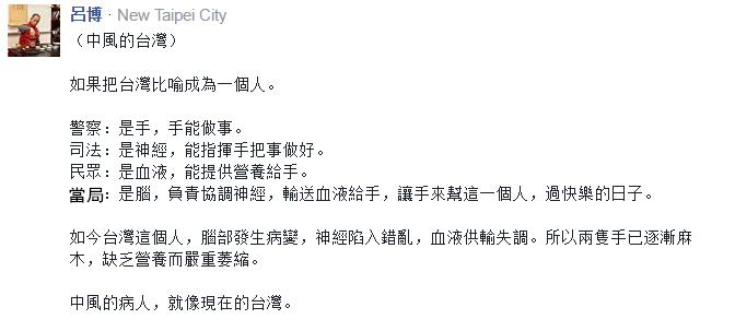 打擊犯罪、維護治安是警察的天職,但也需要各方的配合,可7萬的臺灣警察如今不僅難逃被民進黨政治陰謀戕害的命運,本該護己有利司法系統也有崩壞的危機……誠如臺灣網友所形容的,若將臺灣比作“一個人”,那么如今的臺灣因蔡當局的繆政和操弄已經變成一個“中風的病人”了